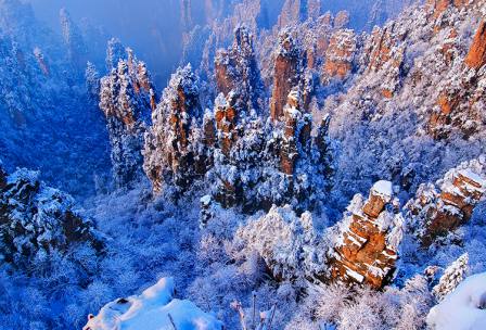 張家界三千奇峰、八百秀水,用“雄、奇、險(xiǎn)、秀、幽”5字來(lái)概括,早已得到大眾的公認(rèn)。張家界的山水,稱得上是風(fēng)景山水的經(jīng)典;游張家界,則成為人生的宿愿和幸事。飽覽張家界,可謂四時(shí)皆宜:春天,是大地充滿靈氣的季節(jié),張家界此時(shí)的山水,充滿著生氣,充滿著向往,它的每一座山峰,每一道水溝,都舉著搖曳多姿的花朵,是表示對(duì)游人的歡迎,更是表達(dá)一種生命的意境;夏天,是空氣膨脹欲望的季節(jié),張家界此時(shí)的山水,充滿著遐想,充滿著誘惑,它的一草一木,一枝一葉,都滴瀉著生命的翠綠,裝飾著每一座山峰,蘊(yùn)含著人生的幻想和追求;秋天,是星月喜慶豐收的季節(jié),張家界此時(shí)的山水,一樣地走向深厚,一樣地寫滿沉穩(wěn),它的山山嶺嶺,它的溝溝壑壑,在翠綠的底色中亮出火一樣的紅葉,抒寫著熱情,歌吟著成熟與奔放;冬天,是風(fēng)花雪月般詩(shī)意的季節(jié),張家界此時(shí)的山水,冷峻中透著溫情,蒼茫里飽含著魄力,它的一座座石峰,它的一棵棵巖松,都是一個(gè)個(gè)冰清玉潔的世界,它們都玉樹臨風(fēng)般燃燒著,引發(fā)著游客的激情,而那些冰雪覆蓋的小溪,流水在動(dòng)情地吟唱,就像有情人心中的歌吟,最易撩動(dòng)愛人的衷腸。我愛張家界四季的景色,但我更愛張家界的冬天,我愛在冬天里與張家界的山水對(duì)話,我愛在冬天里到張家界的山水間去暢游,去作一種思想的飛翔! 張家界的冬天并不寒冷,這主要是因?yàn)樗闹芏喔呱剑@里的冬季多為晴朗天氣,故區(qū)域小氣候較為溫暖,暢游張家界無(wú)須冒嚴(yán)寒之苦,又可避開歷酷暑之難。即使是雨雪天氣,因?yàn)榫皡^(qū)是一個(gè)高出的整體平臺(tái),小地形則是一塊盆地,所有的景觀就好比一個(gè)放大的盆景,所以在游歷觀賞的行程中,并無(wú)寒氣逼人、冷酷加身的感覺。一旦遇上陰雨天氣,景區(qū)因海拔較高,山地氣候又特別明顯,放眼望去,枝枝葉葉便都成了水晶般的世界,精靈奇巧的霧凇千姿百態(tài),笨拙憨厚的灌木清純天成。若是有雪降臨,不管大小,山上立即便會(huì)是一個(gè)白雪皚皚的世界,恰似翡翠盤中堆砌著白玉,那些巖壁上的枯枝古樹,此時(shí)又煥發(fā)青春,讓人不由得想起兩句古詩(shī):“春來(lái)苔作葉,冬至雪為花。”我曾陪《羊城晚報(bào)》的一位朋友冬游張家界,她興致極高地滿山里跑,她說:“此山此景,人生頭一回遭遇,可望而不可求,遺憾的是沒有看到雪境里的張家界。”真是老天作美。第二天,我們?cè)谏缴献咧咧炜毡泔h起了雪花,頃刻之間,便是一個(gè)雪花飛舞的世界,大地上石峰上樹上身上的雪花,就像火苗一樣點(diǎn)燃了朋友的激情,她情不自禁地面對(duì)著山野吟哦起來(lái)——親切而新鮮的雪花,落下來(lái),在夢(mèng)幻深處,在心靈深處,就像飄落的雪白的火焰,溫暖我人生的境界點(diǎn)燃我生命的激情……雪花落下來(lái),落滿大地、石峰和樹冠豐腴著山峰、溝壑和想象為詩(shī)意和行程增加了厚度,雪清新,溫暖,純潔,冷冽它是自然的語(yǔ)言,火辣辣的語(yǔ)氣中帶著熱情,還有看不見面的堅(jiān)硬和銳利…… 作為一個(gè)南方的朋友,見到如此美妙的雪的世界,她的激動(dòng)和驚喜,完全是我意料中的事;而讓我驚奇的是從不作詩(shī)的她,竟然意隨興致的吟唱出如此語(yǔ)意雙佳的詩(shī)作來(lái)。 雪中游張家界,你無(wú)需為安危著想,景區(qū)的工作人員,無(wú)論何時(shí)何地,都是游客的保護(hù)神。在我的記憶中,深深地記得2000年正月初一的那天,我與攝影界的朋友游張家界,每到一處,各種接待工作都井然有序,清路工人硬是在一尺余厚的積雪上,清出了通往每一個(gè)景區(qū)景點(diǎn)的道路,每一處易出事故的地方,都有工作人員守護(hù)。在天子山頂,我們遇到一群臺(tái)灣游客,他們高興地指著冰天雪地的景區(qū)景點(diǎn)說:“張家界山美水美人更美,張家界的雪景則是美上加美,每一座石峰都冰清玉潔,每一棵樹都玉樹臨風(fēng),真是一個(gè)美妙的雪世界啊!” 張家界的森林覆蓋率達(dá)99.7%以上,植物科目種類比整個(gè)歐洲大地還多。因此,冬游張家界,滿眼里仍然是綠色的世界,這就是它與北方景觀的區(qū)別。即使是冰天雪地,那臨風(fēng)玉樹,那挺立的石峰,透過冰雪,仍然會(huì)展現(xiàn)出綠色,就像一個(gè)翡翠的世界。置身于這樣的景致里,使你的感覺不寒不躁,如早春二月,心如春芽。這時(shí),你心隨景移,興隨景起,你會(huì)由衷地感嘆:“這世界多么美妙,真是個(gè)賞雪景的勝地。”? 冬天去張家界賞雪景,游客不用自己為交通食宿多操心。如今去張家界,公路、鐵路、航路三位一體,十分方便,市內(nèi)去景區(qū)也已修成了高等級(jí)公路,返往暢通無(wú)阻。旅游通行是景區(qū)旅游,市內(nèi)住宿,各類檔次的賓館任由選擇。盡管景區(qū)山高溝深,路陡程長(zhǎng),但游客無(wú)需為勞累擔(dān)憂,景區(qū)內(nèi)已建成兩條上山索道和一條上山升降梯,上黃石寨、天子山、袁家界等核心景區(qū),只是一瞬間的事情。即使在山上走累了,隨處可以叫一架滑竿,轎夫都是些訓(xùn)練有素的精壯青年,他們可以抬著你慢悠悠地一邊瀏覽著雪中的景致,還會(huì)一邊為你講些民俗或是一些山中的故事。他們會(huì)為你噓寒問暖,寧肯自己多吃些苦,多受些累,他們也