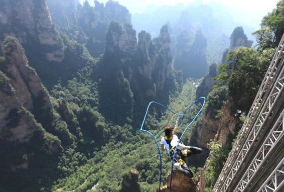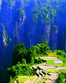 張家界,是湖南一個(gè)著名的風(fēng)景區(qū),一座天然的森林公園。黃石寨、天子山、金鞭溪等勝境,是令游人心馳神往之地。在我們出發(fā)之初,心就早已高高飛揚(yáng),五個(gè)多小時(shí)的顛簸終于把我們載到了目的地,導(dǎo)游是一個(gè)年輕的女孩子,一見面就放開歌喉唱了首當(dāng)?shù)赝良易宓母柚{,歌聲婉轉(zhuǎn)動(dòng)聽,一下子讓我們領(lǐng)略到了鄉(xiāng)村